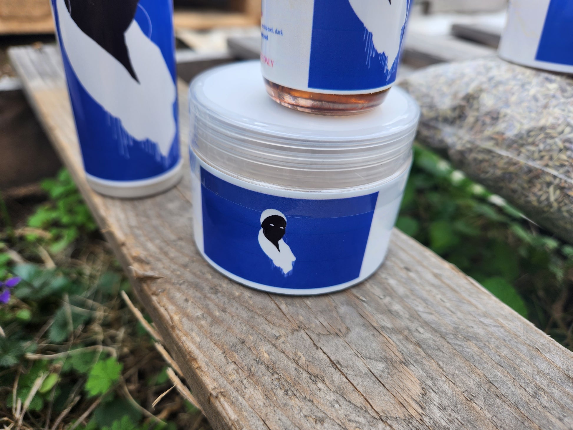 Rice/Flax Gel | Aloe Juice | Shea Butter | Olivem 1000 Grapeseed Oil | Olive Oil | Cocoa Butter | Coconut Oil | Castor Oil | Glyceryl Stearate | Vitamin E Oil | Essential Oil Blend | Preserve Eco
