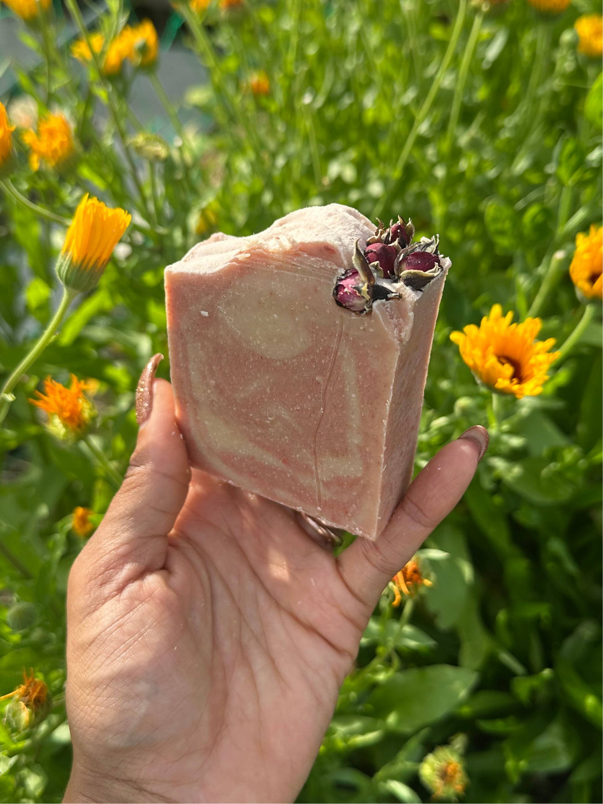 Coconut Oil | Water | Grapeseed | Shea Butter | Sodium Hydroxide | Sunflower Oil | Castor Oil | Cocoa Butter | Manuka Honey | Kaolin Clay | Colloidal Oats | Zinc Oxide | French Pink Clay | Cane Sugar | Rose EO | Rose Buds | Sodium Lactate | Citric Acid (Natural Chelator)