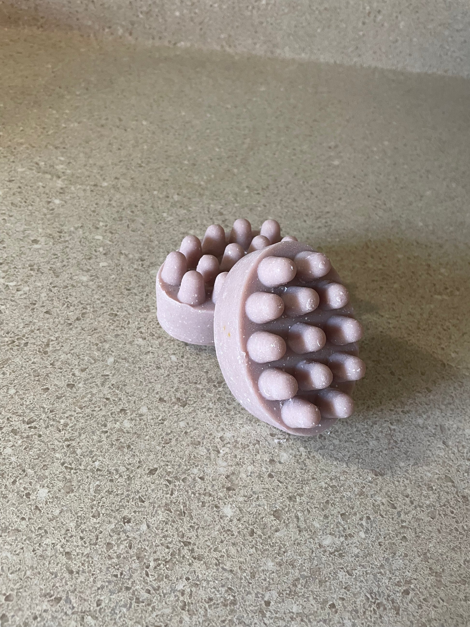 Place massage shampoo bar on your scalp at the root of your hair.